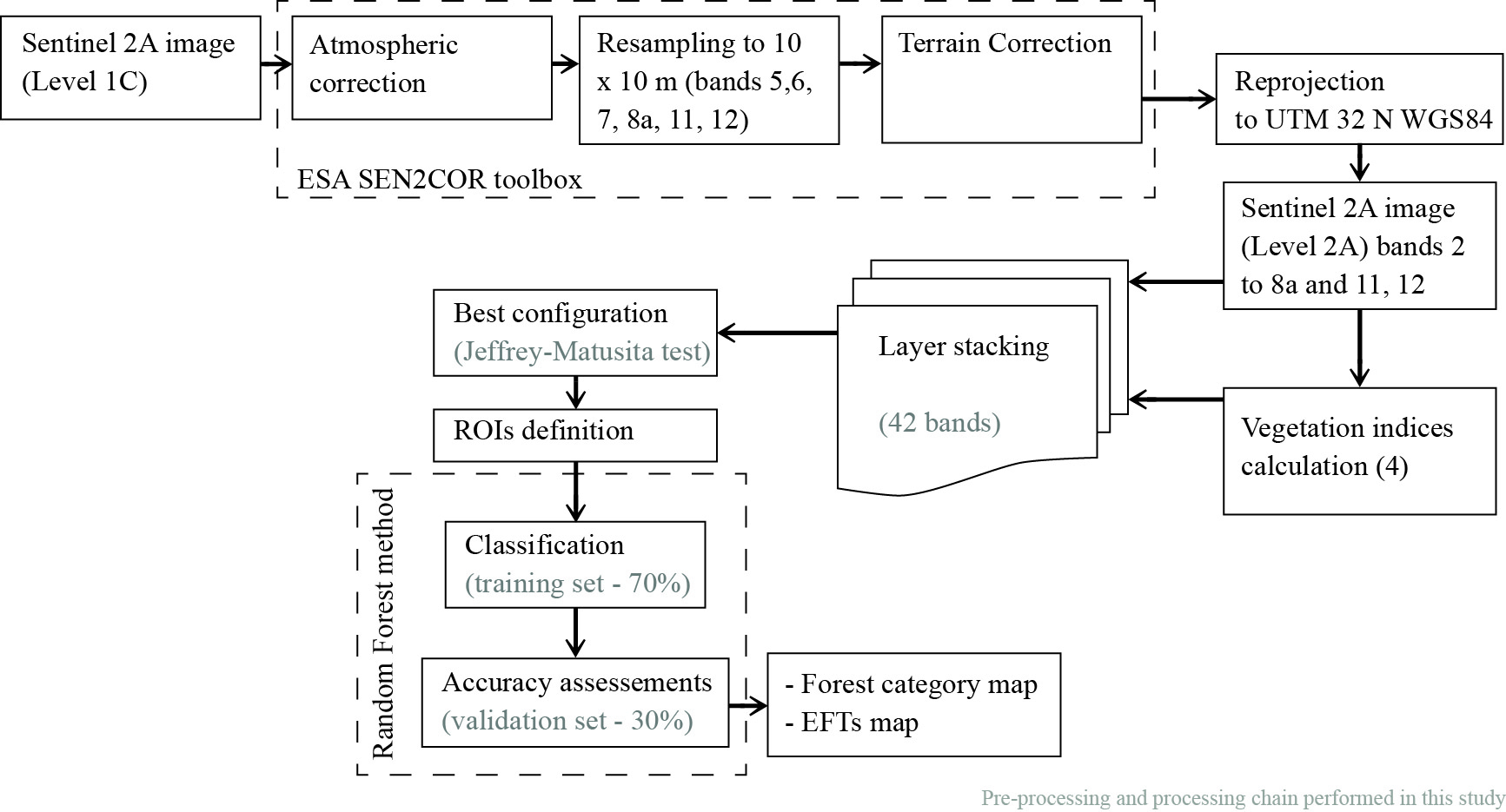 Forest Classification, European Forest Types, Multispectral satellite imagery, Jeffries-Matusita (J-M) distance test, Random ForestAbstract