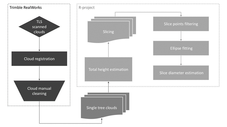 Liu G., Wang J., Dong P., Chen Y., Liu Z. 2018 - Estimating individual tree height and diameter at breast height (DBH) from terrestrial laser scanning (TLS) data at plot level. Forests 8 (2): 1–19. doi:10.3390/f9070398